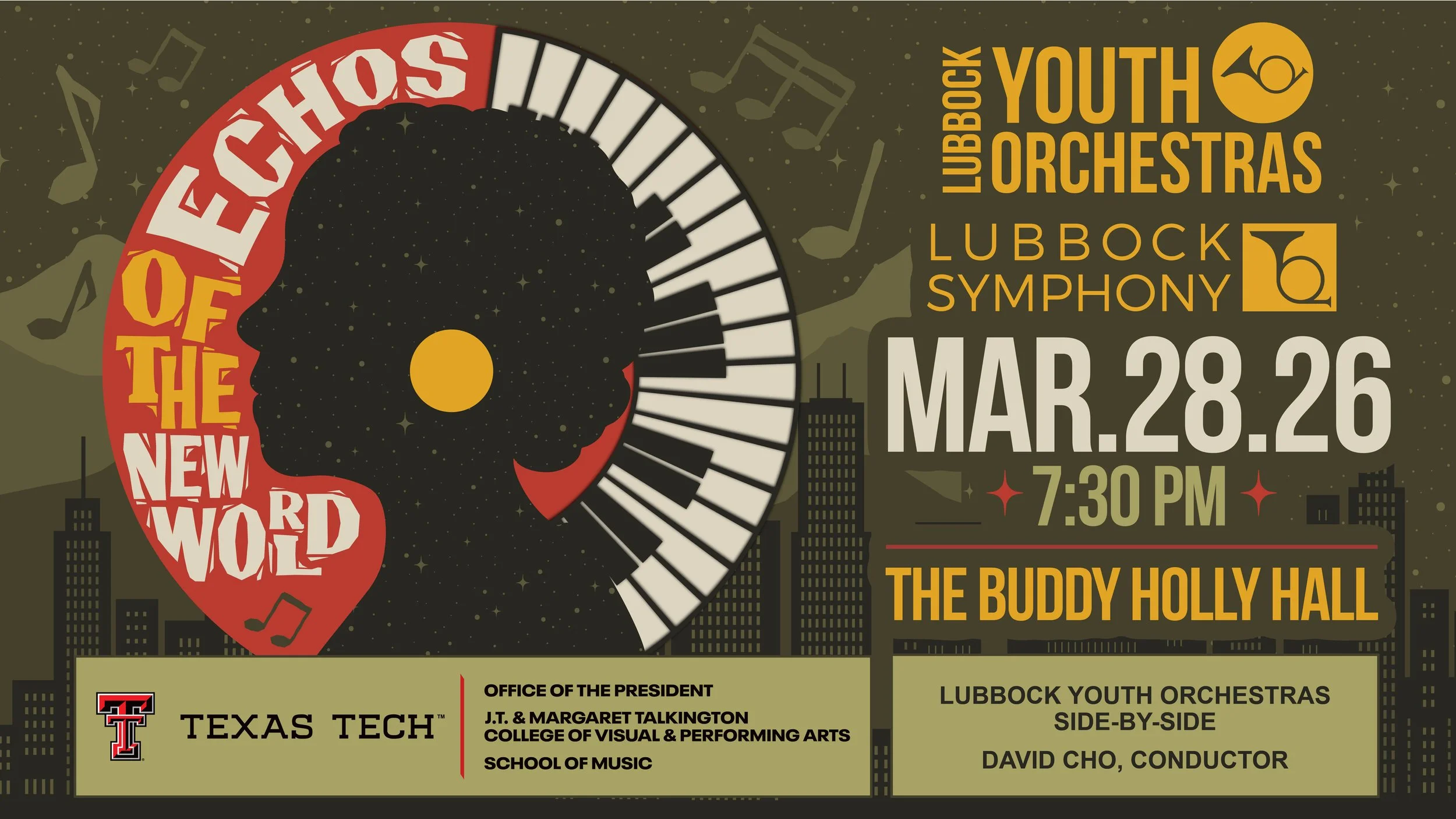 The LSO SIDE-BY-SIDE with top students from the Lubbock Youth Orchestras: Florence Price’s Symphony No. 1, a groundbreaking work blending lush orchestration with the rich melodies of African American spirituals. Dvořák’s Symphony No. 9 “From the New World” follows with nostalgic themes of American folk music.
